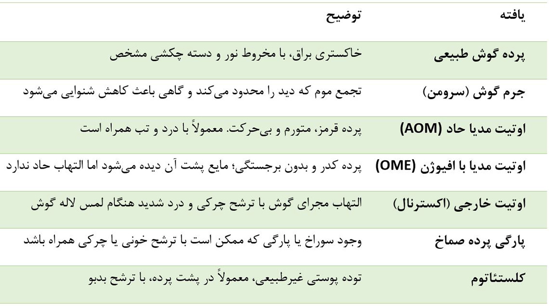 را شناسایی کند. این معاینه بهویژه در بررسی شکایاتی مانند درد گوش، کاهش شنوایی، ترشح یا وزوز اهمیت دارد.